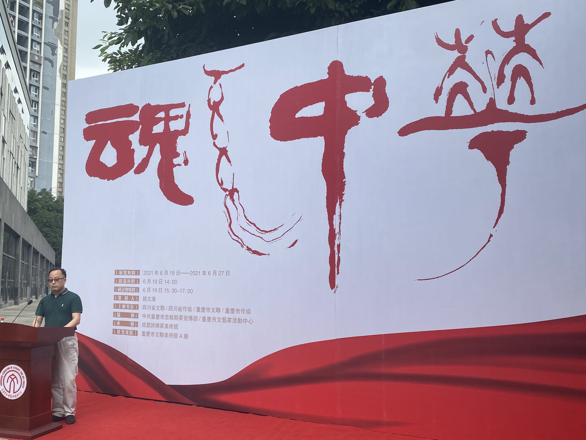 四川省作协党组书记、常务副主席侯志明在致辞中代表作协和全川作家向身为四川省作协名誉主席的马老致以崇高敬意和真诚祝福。侯志明表示:“今天的书法展既是马老书法创作的小结,更是我们晚辈后学的观摩学习机会。既是马老对家乡重庆以及忠县的一根回馈,更是一个有着83年党龄的老党员为党的百年生日所献的一份深情厚礼。”
