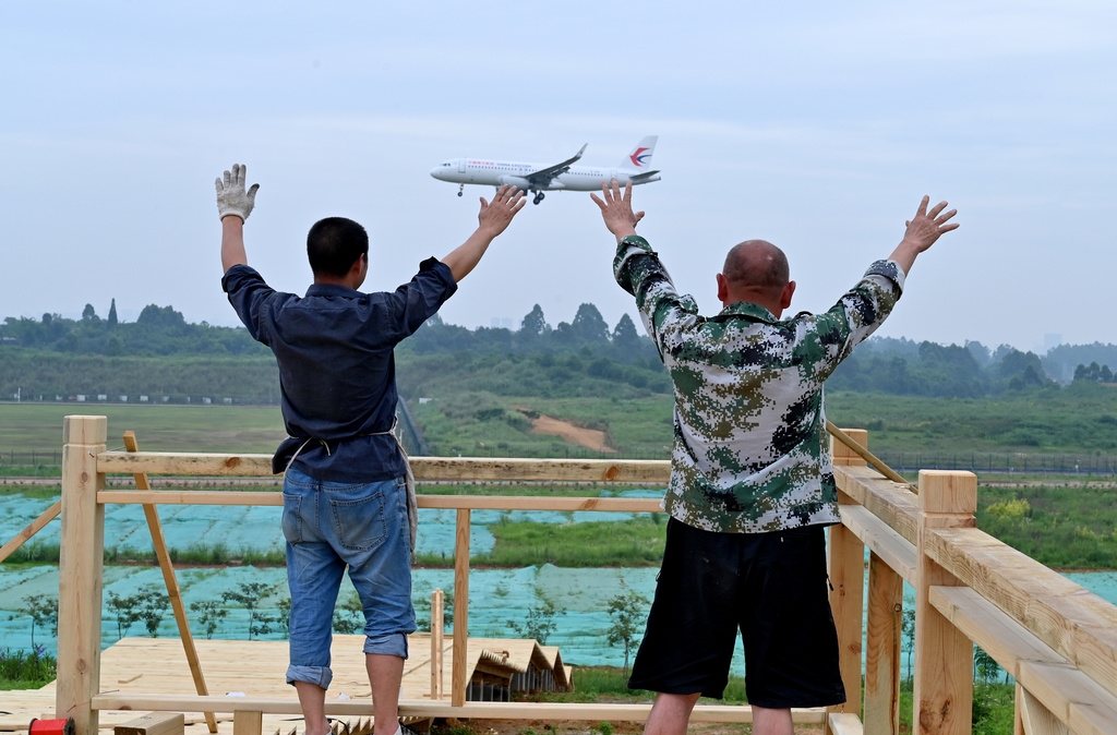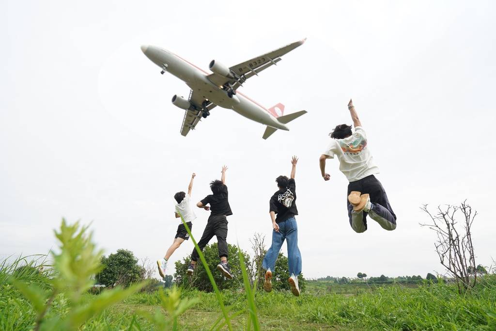 在双流黄许镇职业学校读书的颜洋洋,一早就拽着同寝室的伙伴来空港花田看飞机:“以后坐飞机去拉萨只能去新机场了。”“天府国际机场在新闻里看到过,新机场也能看飞机起降就安逸了。”颜洋洋対记者说。迎面而来的飞机伴随着发动机由远及近的轰鸣声,呼啸着掠过头顶。