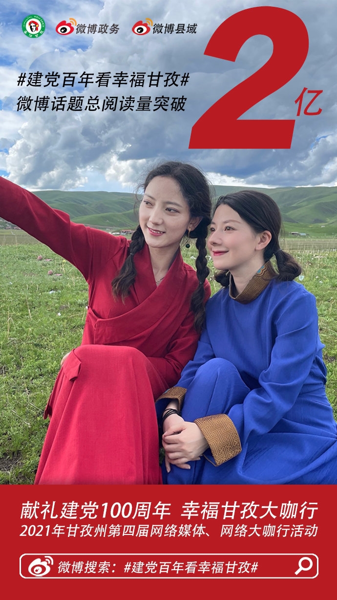 从6月16日活动开始以来,参与本次活动的主流媒体、网络大咖们纷纷通过图文、视频、直播等方式,在所属媒体平台及微博等主流传播平台上,全程晒美景、抒感受、赞变化,截至6月21日上午,微博话题#建党百年看幸福甘孜#阅读已超2亿,并登上微博要闻榜热搜第三名。