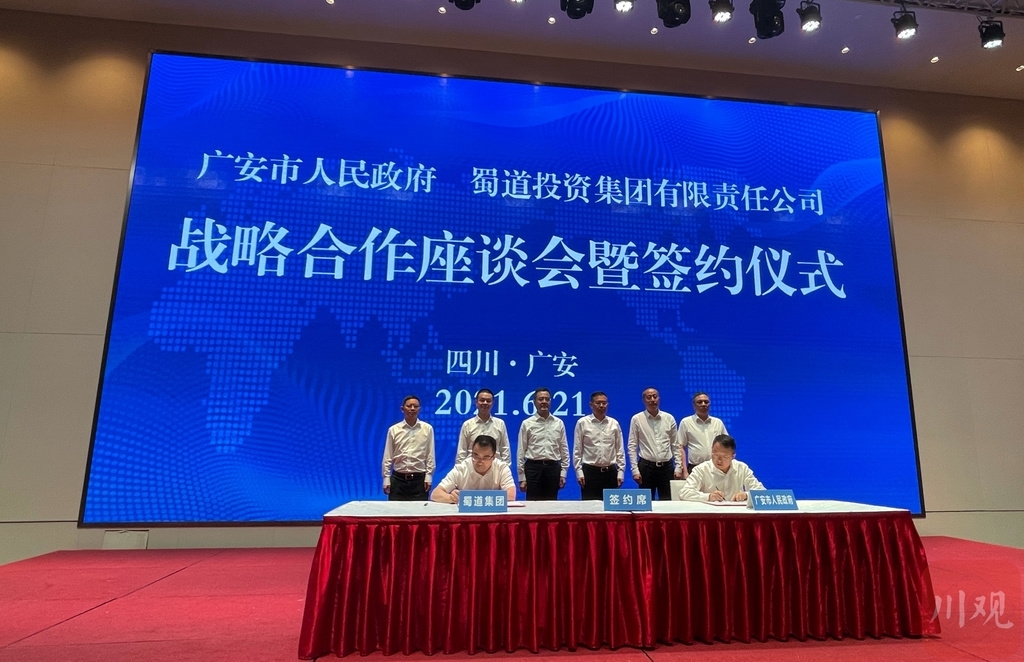 6月21日,蜀道集团与广安市政府签署战略合作协议,双方将携手发展,助力广安加快城市交通基础设施,以及全国唯一的跨省域共建新区——川渝高竹新区建设,共同推进成渝地区双城经济圈建设。