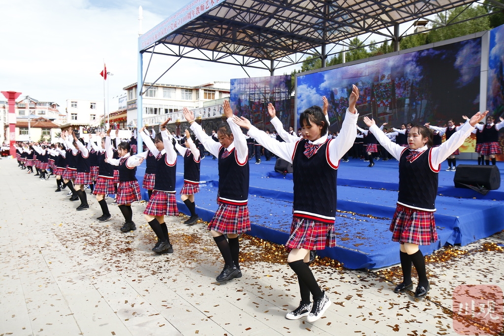 歌曲《爱洒高原》唱响了若尔盖教育人扎根高原志不悔,无私奉献育新人的时代最强音;舞蹈《少年强则中国强》舒展优美,刚柔并济,给观众一次次强大震撼力与冲击力;《男子弓箭舞》、《打酥油》源于生活高于生活,混合着时代的气息;百人诗朗诵《我骄傲我是中国人》,让观众心潮澎湃。最后,开幕式在气势磅礴的全体大合唱《我和我的祖国》中落下帷幕。