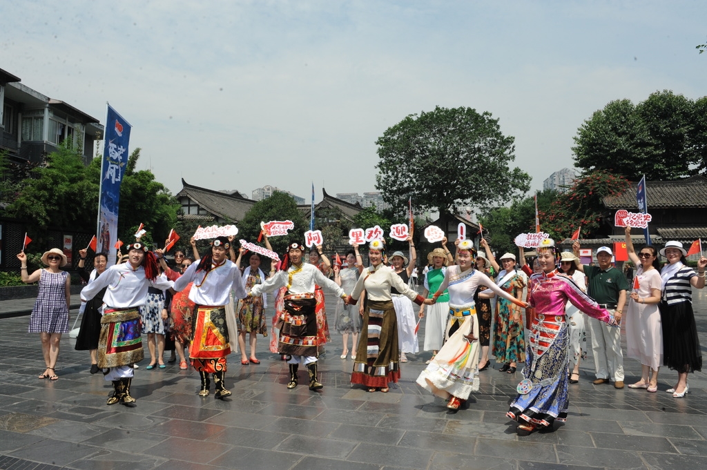 蓝天白云,雪山,草原,牛羊……当大家还沉浸在阿里地区的自然生态和淳朴的民风民俗中时,阿里地区的朋友身着民族服装,手拿哈达来到了宽窄巷子。他们在巷子里载歌载舞,与游客互动、拍照,共同唱起了《北京的金山上》这首传唱了几十年的经典歌曲。