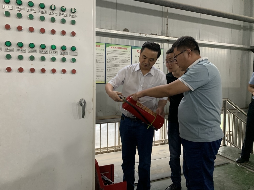 6月17日,省安办第十七督查组在平昌县畅延米业有限公司检查灭火器等消防器材