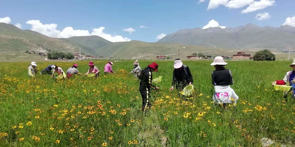 白玉现代农业园区工人正在采摘雪菊。李卫东 摄