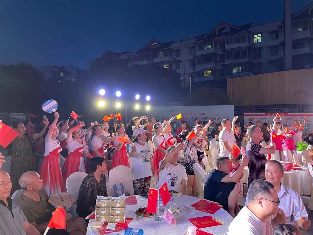 “百年铭初心,同心共奋进!”6月22日晚,在成都市新津区五津街道平岗社区,800余名干部群众手拿国旗,一起喊出响亮的口号。这是当晚社区庆祝中国共产党成立100周年文艺晚会上的一幕。