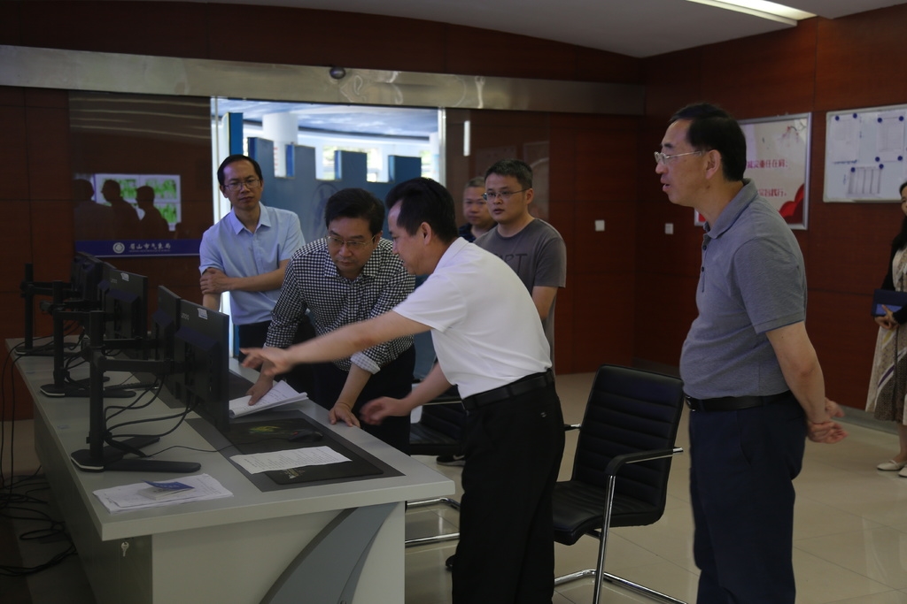 四川省气象局二级巡视员张勇在检查眉山市气象台汛期气象服务工作。