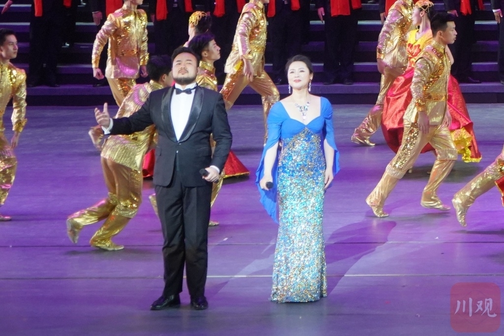 马薇是成都音乐家协会主席,也是金钟奖获得者,谭学胜是四川音乐学院教授,顾文梦是90后,也是在被誉为“世界十大国际音乐比赛之一”的比赛意大利布塞托“威尔第之声”国际声乐比赛总决赛中获得两项大奖中国选手。林子默是四川音乐学院受聘的青年歌唱家。“此外,1000余名来自四川文艺院团、高校的演员们齐唱齐舞,场面相当震撼。”本场节目编导之一林晨介绍。