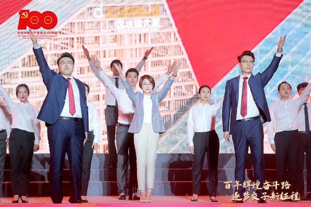 6月23日,在大合唱《在灿烂阳光下》的动听歌声中,汇聚成都金融科技创客的“百年辉煌奋斗路·逐梦交子新征程”庆祝中国共产党成立100周年文艺汇演在交子金融科技中心拉开序幕。