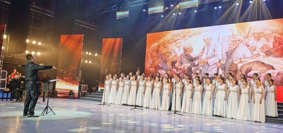 最后,全体人员同声高唱《没有共产党就没有新中国》,音乐会落下帷幕。