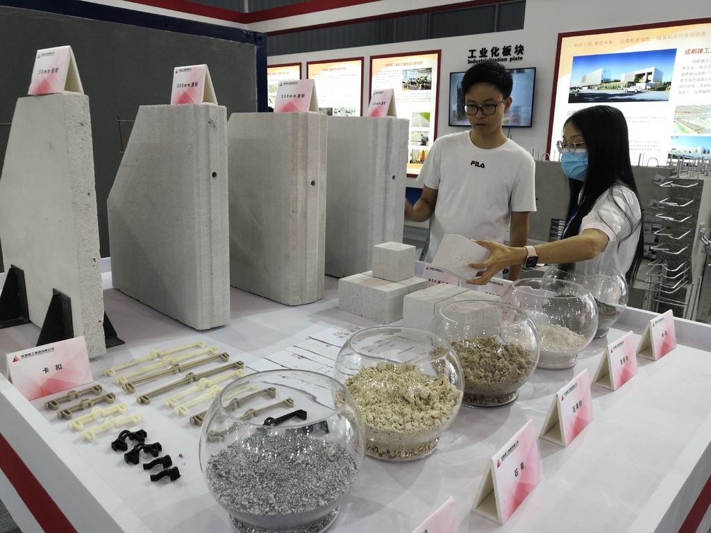 在成都建工集团340多平方米的展区内,成都建工集团通过一件件实物展品,把“智能制造工厂”和“智能建造工地”搬进了展区。 从预制剪力墙、预制柱、叠合梁、叠合板、蒸压加气混凝土墙板等各类装配式房屋的绿色建材,到使用建筑垃圾再生骨料的市政产品、淤泥制陶粒混凝土产品、超高性能混凝土制品等装配式市政领域的绿色建材,通过产品实物、智造设备、生产线模型,绿色环保的装配式建造工艺得到充分展示……