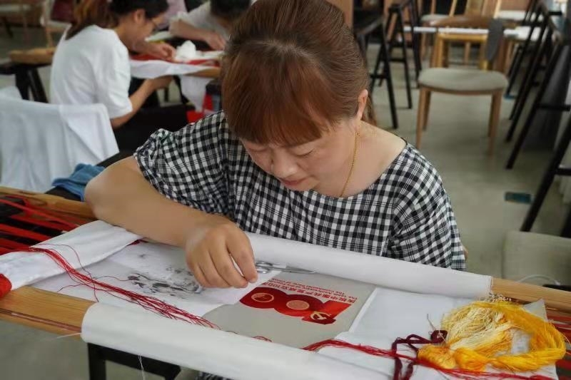 “熟练地穿针、引线,右手轻轻地将细细的绣针穿过绣布,左手又飞快地将其抽出,一针又一针……”6月24日,四川在线记者从郫都区获悉,为庆祝中国共产党成立100周年,郫都区安靖街道的绣娘们用丝丝针线绣出对党的热爱和敬意。