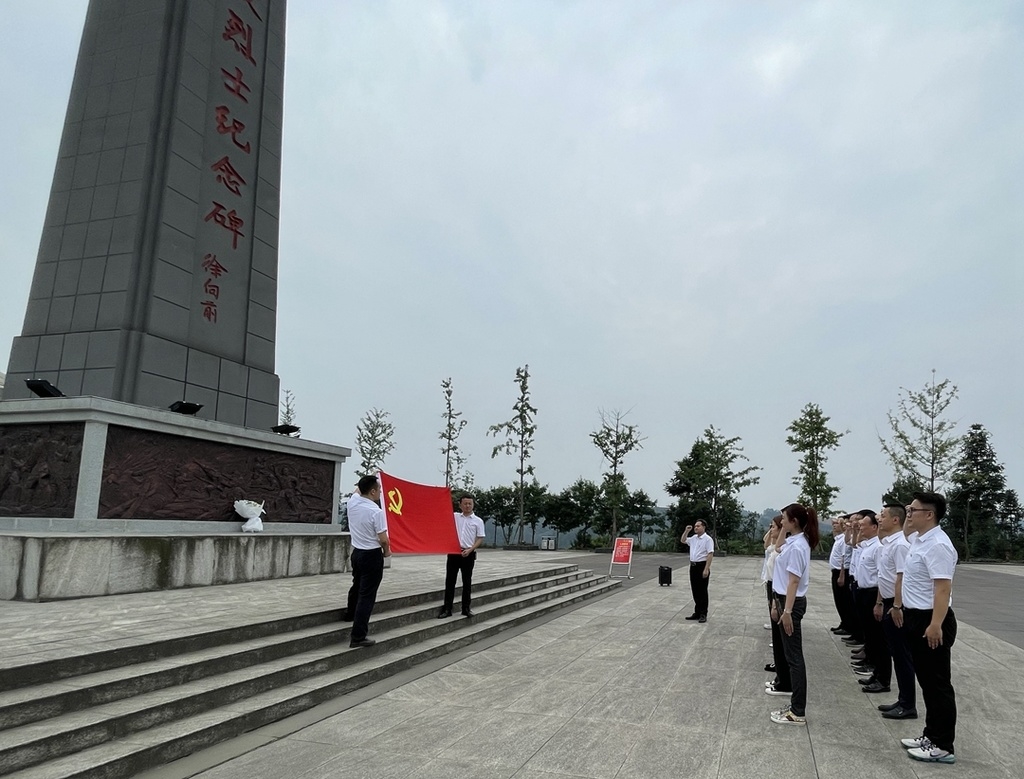 从象征红军二万五千里长征的250梯阶梯拾级而上,支部党员来到了红军百丈关战役纪念园的纪念碑前。全体党员鞠躬行礼,向革命先烈们表达内心深深的敬仰和怀念。全体党员面朝党旗,高举右拳,重温入党誓词。铿锵的誓词,坚定的承诺,让每一位党员的心灵再次受到震撼和洗礼。