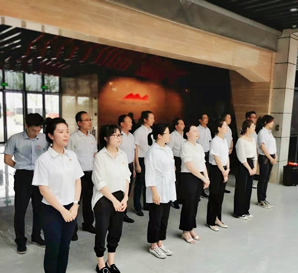 在纪念碑前,支部党员以饱满的热情演唱了《没有共产党就没有新中国》《唱支山歌给党听》等歌颂祖国歌颂党的赞歌,或铿锵有力,或饱含深情,全体党员干部在旋律中感悟党史峥嵘,用歌声献礼建党百年华诞,展示了党员干部以实际行动为党旗增光添彩,永远跟党走的信心和决心。