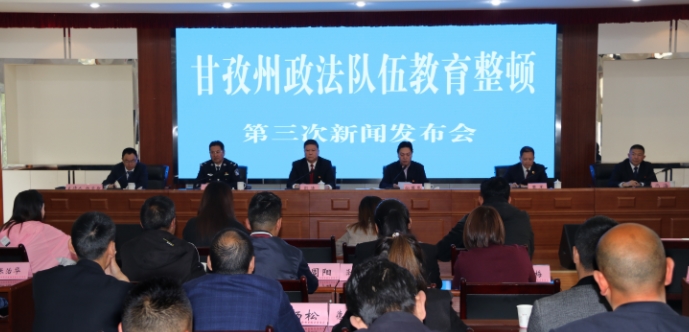 6月24日,甘孜州政法队伍教育整顿领导小组召开第三次新闻发布会及群众座谈会,通报甘孜州政法队伍教育整顿成果、通报警示案例。政法各部门介绍全州政法队伍教育整顿开展情况和取得的成效,并答记者问。