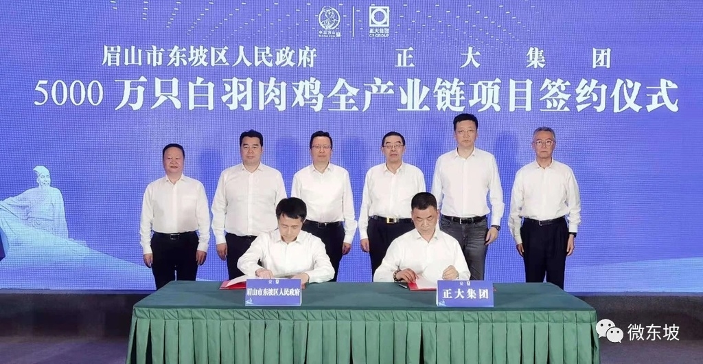 5月28日,正大集团5000万只白羽肉鸡全产业链项目签约落户眉山,这是继2019年300万只蛋鸡全产业链项目后,正大集团与眉山的又一次握手;