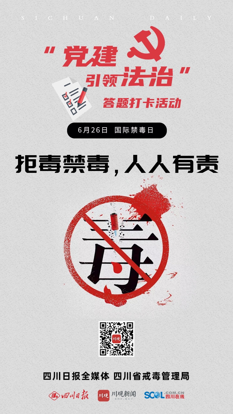 当答题打卡活动遇到6月26日国际禁毒日,惊喜随机掉落。四川日报全媒体联合四川省戒毒管理局,给答题的你送福利啦!希望大家牢记拒毒禁毒,人人有责。