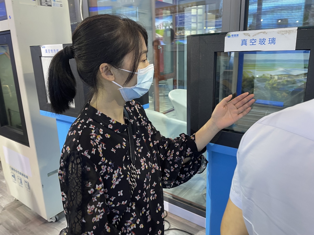 而在南充展厅内,还有一个更大的玻璃房子,写着“健康节能被动式超低能耗绿色建筑”。据孔泛宇介绍,这个玻璃房子也主要是由真空玻璃搭建而成。那么真空玻璃和节能、绿色、超低能耗又有什么关系呢?
