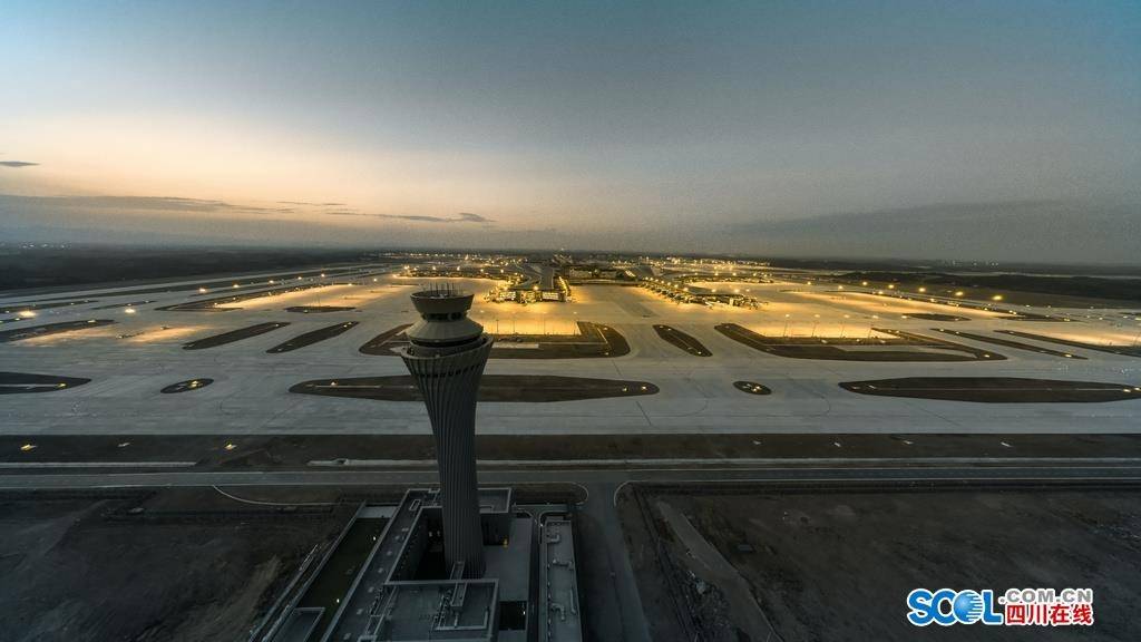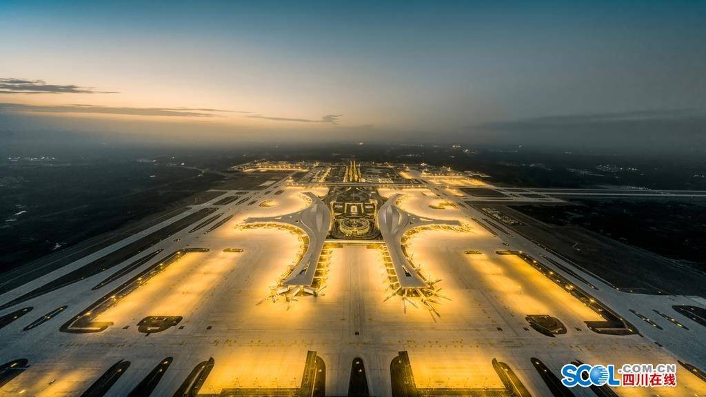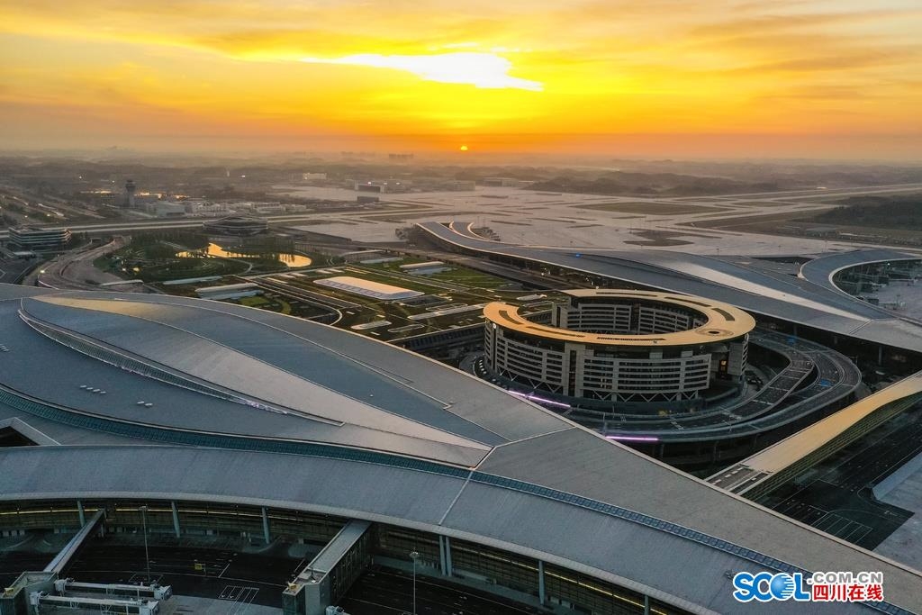 日出金光洒满大地,成都天府国际机场熠熠生辉。