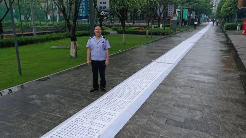 “从今年3月1日开始写,整整写了两个月。”国家税务总局成都市青白江区税务局党员干部舒世林说,他于1986年入党,有35年党龄,去年就开始筹划手写长卷,为党的百年华诞送上一份有意义的礼物,“书写之前,用半年时间做了大量准备工作,必须确保写的时候不能错一个字。”