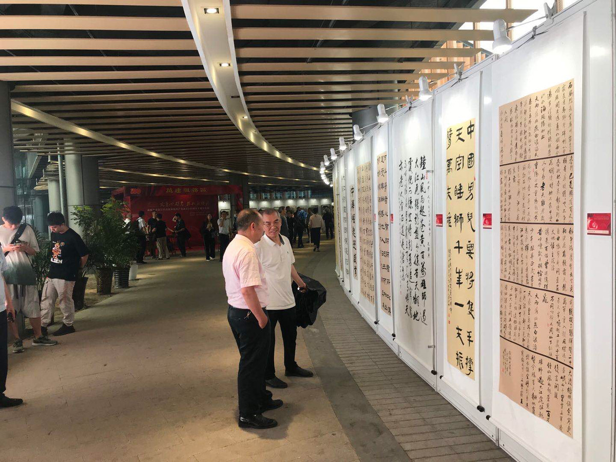 在展出的作品中,一幅气势恢宏的《共产党宣言》隶书书法长卷备受关注。长卷全文采用简化字隶书,共计18161字,每行12字,行高69厘米,行宽6.5厘米,总行数1543行,总长度100米。