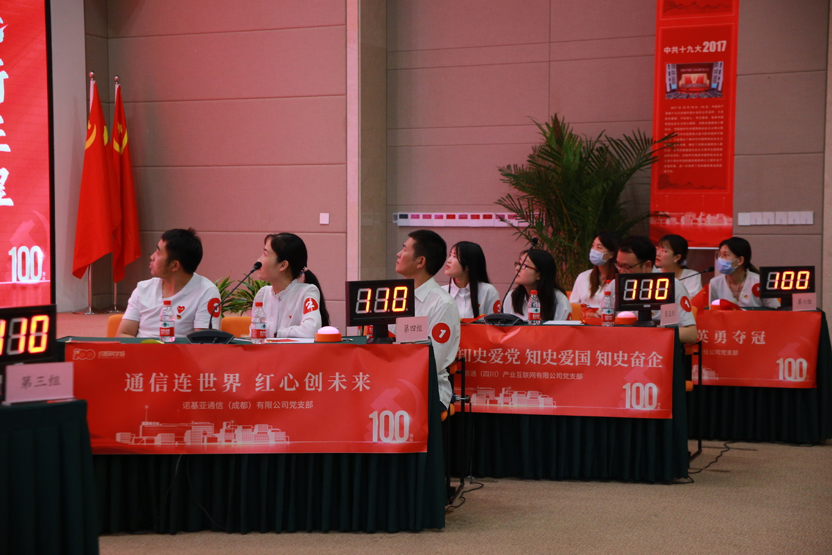 本次参加党史竞赛的有6支队伍,共计18名优秀党员代表,分别是四川天府新区新经济局机关党支部,四川天府新区互联网行业综合党委,四川天府新区兴隆街道党工委,诺基亚通信(成都)有限公司党支部,成都通甲优博科技有限责任公司党支部,联通(四川)产业互联网有限公司党支部。
