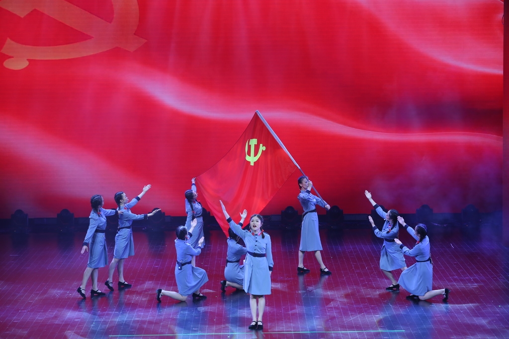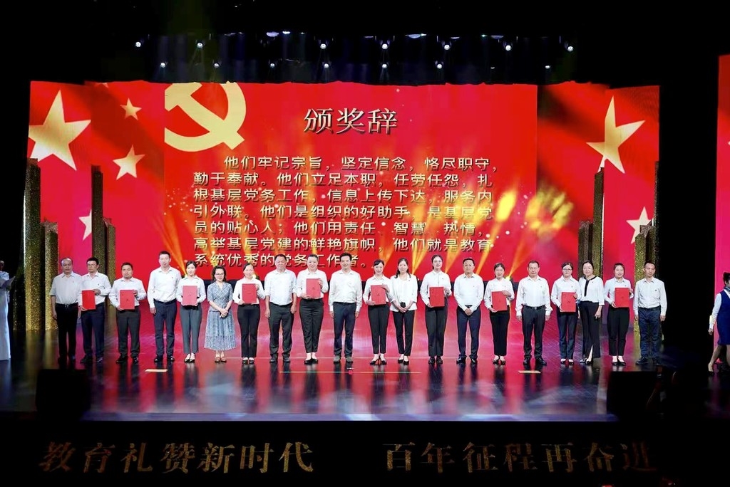 活动以“教育礼赞时代 百年征程再奋进”为主题,以大合唱《在灿烂阳光下》拉开帷幕。17名新发展党员面对党旗进行了入党宣誓。同时表彰了50名优秀共产党员、30名优秀党务工作者和20个先进基层党组织。随后进行的汇演分为“星火”“燎原””信仰””展望”四个篇章,采用合唱、歌曲、舞蹈、朗诵、情景剧等多种文艺形式,歌颂了党的百年光辉足迹和丰功伟绩,带给现场观众一场视听盛宴和精神洗礼。