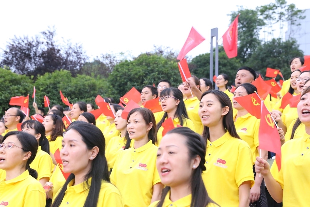 6月25日19:30,在泸州市龙马潭区政府广场上,嘹亮的歌声响起。