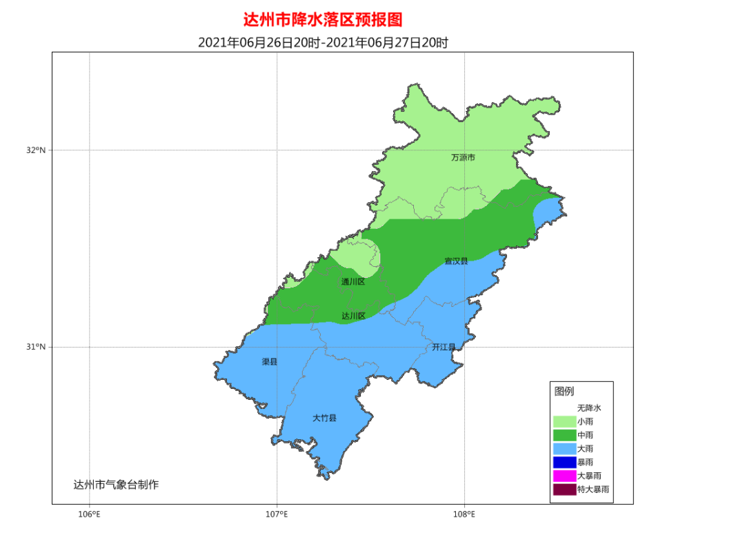 6月26日凌晨至上午,达州经历一次集中、明显的强降水天气过程,全市普降大到暴雨,局地大暴雨。