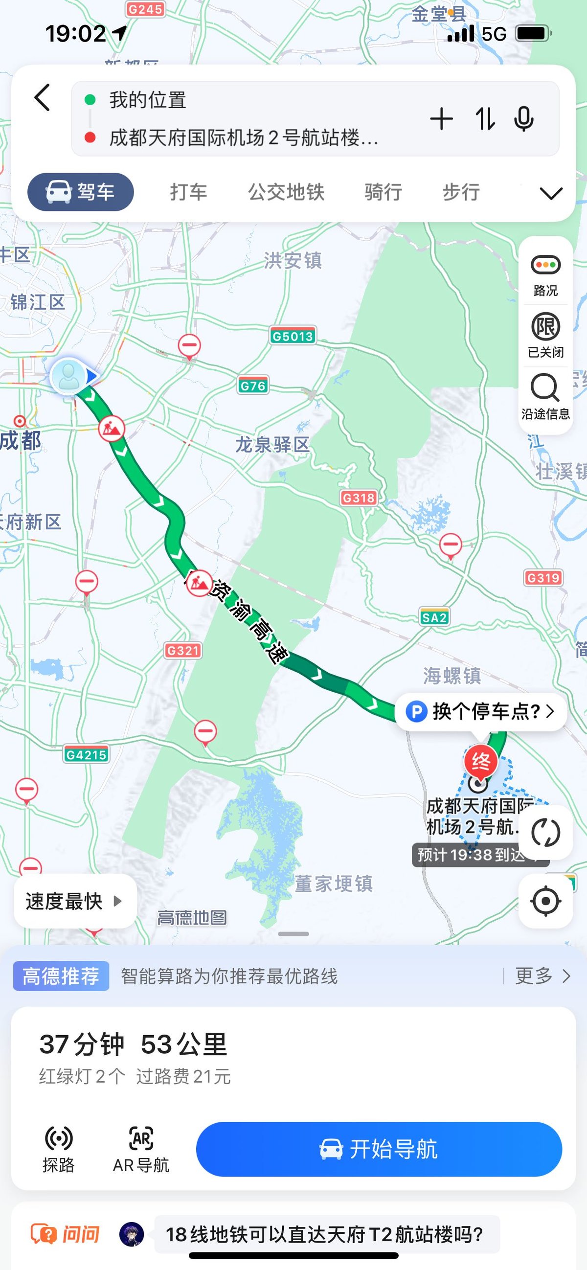 四川在线记者体验发现,天府机场高速沿途连接了成都绕城高速、成自泸高速、二绕高速、三绕高速、成宜高速、资潼高速,与周边路网比如京昆、厦蓉、沪蓉等高速相连,还与天府国际机场、双流机场、成渝客专、成自高铁、地铁18号线、地铁13号线、机场北线快速路、机场南线快速路等综合交通运输体系无缝衔接、转换,是区域内集航空、高铁、地铁、公路网综合交通运输体系的重要一环。