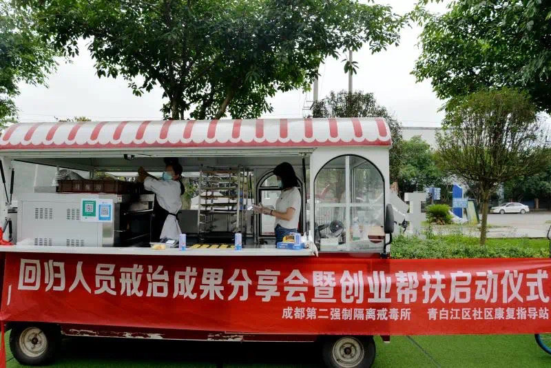 在分享会现场,“帮帮团”内成功创业的戒毒回归人员张某正在制作甜品,扑鼻的香味让人垂涎欲滴,“戒毒人员在出所后,很难很快找到合适的工作,为了帮助大家,我无条件传授烘培技能,并在大家前期创业阶段帮助大家定制量贩车、原材料等。”张某说,她是2020年4月回归社会的,白天上班,晚上烘培,一方面是为了挣钱改善生活,另一方面也是为了让自己忙碌不再想“毒”。经过不断奋斗打拼,如今她生活自给自足,月收入上万,并已教授5名戒毒回归人员学会了烘培技能,带动1人成功创业。(图片由省成都二戒所提供)
