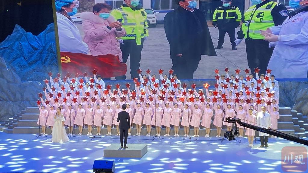 “没有共产党就没有新中国”“感恩新时代”“阿妈的那支山歌,我一直唱到今”……《旗帜颂》《光荣与梦想》《新时代 新甘孜》《唱支山歌给你听》《社会主义好》《歌唱祖国》等合唱歌曲依次上演,全体合唱队员满怀崇敬的心情,以嘹亮的歌声,唱出康定人民对党的崇高信仰,唱出了团结奋进、拼搏奋斗的豪迈情怀和昂扬斗志。