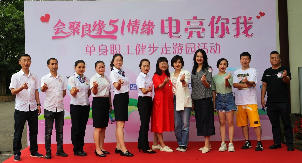 为深入贯彻省总工会、国网四川省电力公司2021年为职工办实事工作部署,关心关爱职工,推进单身职工“牵手行动”,6月26日,由省总工会女职工委员会指导,国网四川省电力公司工会主办的“会聚良缘·51情缘—电亮你我”单身职工健步走游园活动在名雅职工文体中心举行,来自该公司13家在蓉单位、四川大学华西医院等特邀单位的150余名单身职工在游园活动中邂逅美好姻缘。