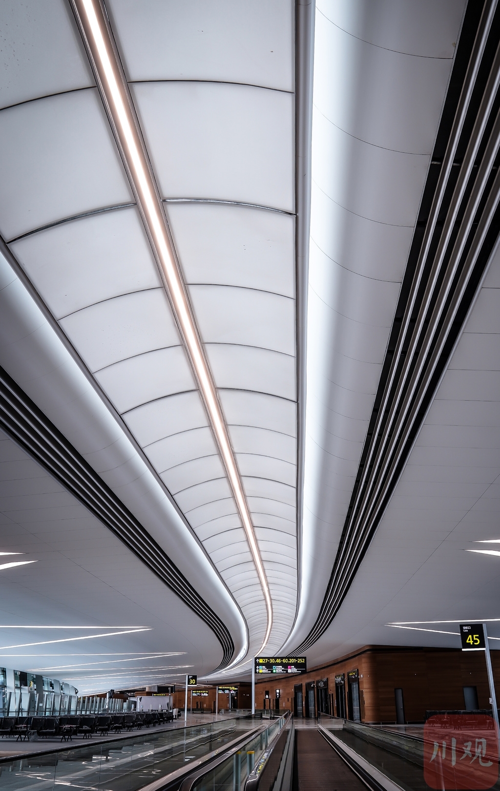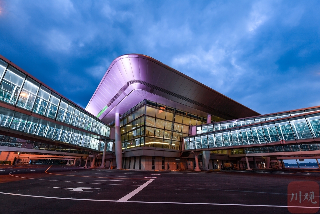 蜀道难于上青天的四川曾是中国西部交通困顿的缩影,成都金沙遗址出土的太阳神鸟金箔,更是寄托着古蜀先民渴望翱翔蓝天的梦想。成都天府国际机场的设计灵感神鸟驮日飞翔,正是来源于金沙遗址出土的太阳金箔的创意,既契合了古蜀文明的文化特质,还寓意着机场为四川经济腾飞插上翅膀的美好愿景。穿越3000年时空,从新机场腾空而起的客机带着中华先民的飞天希冀,以自信的姿态飞向世界。