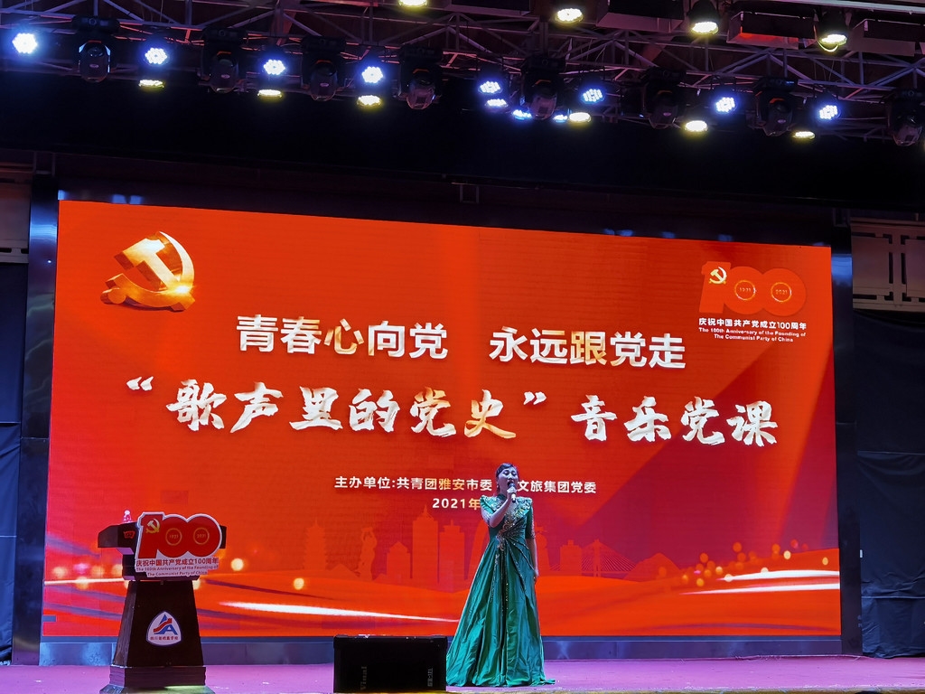 雅安市特别策划“歌声里的党史”音乐党课自5月推出以来,通过固定课堂、流动课堂、云上课堂,深度挖掘党史里的的音乐元素、歌声中的党史故事,已为全市机关、社区、企业、学校、农村、部队等不同领域党员干部群众宣讲40多场,覆盖基层党组织100多个、受众3000余人次,收集党员心里话手卡2000多张,打造听得懂、听得进的雅安党史学习教育品牌和文艺理论宣讲品牌。