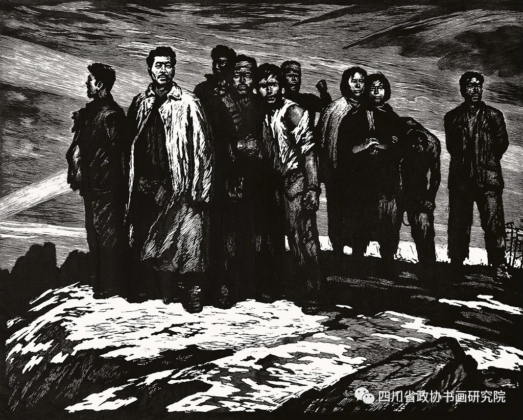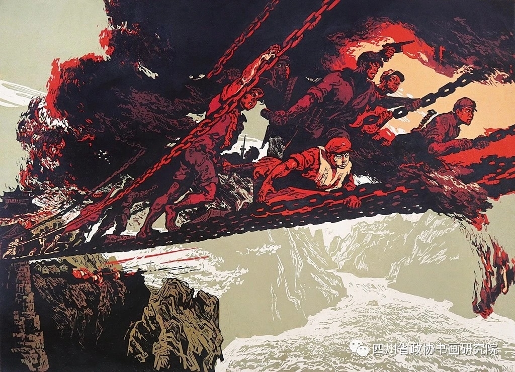 江碧波《飞夺泸定桥》版画 110cm×150cm
