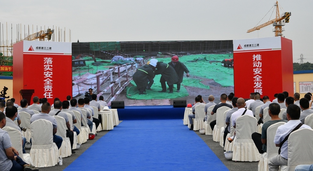 6月28日四川在线记者从兴城集团获悉,一场防汛应急演练活动日前在兴城集团下属成都建工二公司玉石苑房建及配套工程项目工地展开,由此拉开了该公司工会主办的2021年安全生产月“安康杯”劳动竞赛暨防汛应急演练活动的序幕。