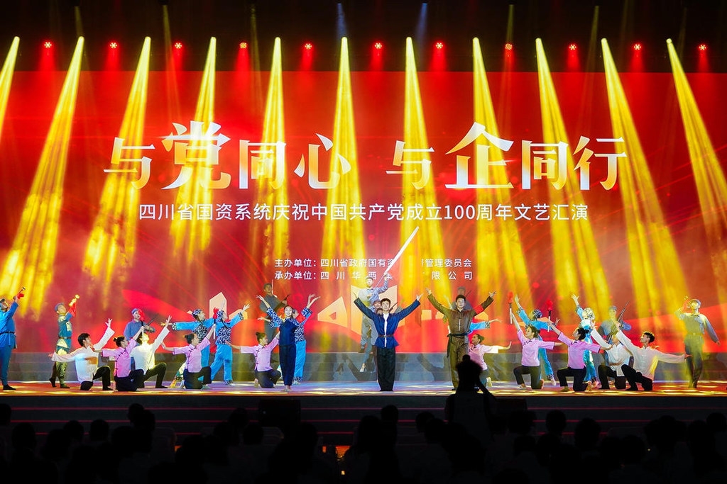 为庆祝中国共产党成立100周年,共忆峥嵘岁月、同庆百年辉煌,激励四川国企“奋进十四五、建功新时代”,6月28日,四川省国资系统“与党同心·与企同行”庆祝中国共产党成立100周年文艺汇演在成都精彩上演。此次汇演由省国资委党委主办,华西集团承办,全省国资战线共1400余人参与。