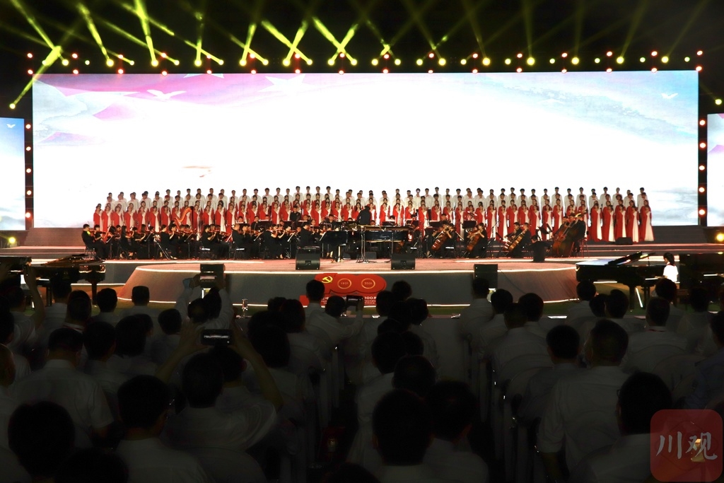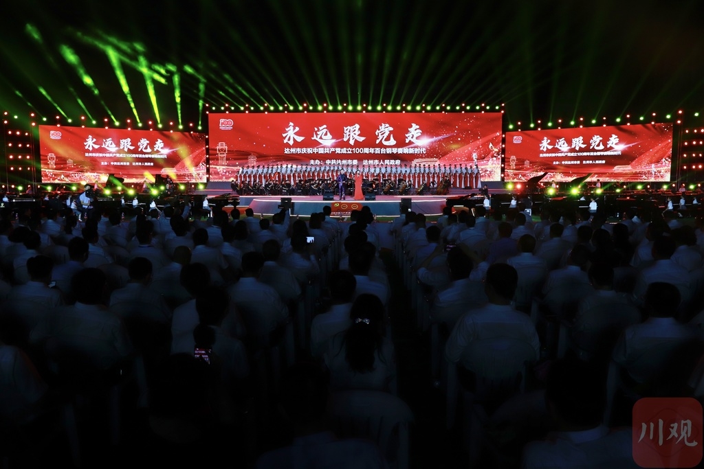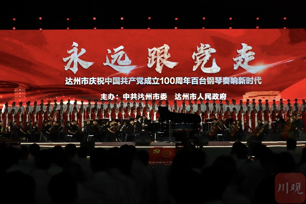 6月28日晚,以“永远跟党走”为主题的达州市庆祝中国共产党成立100周年百台钢琴奏响新时代演出活动,在州河之畔达川区达川中学三里校区举行。