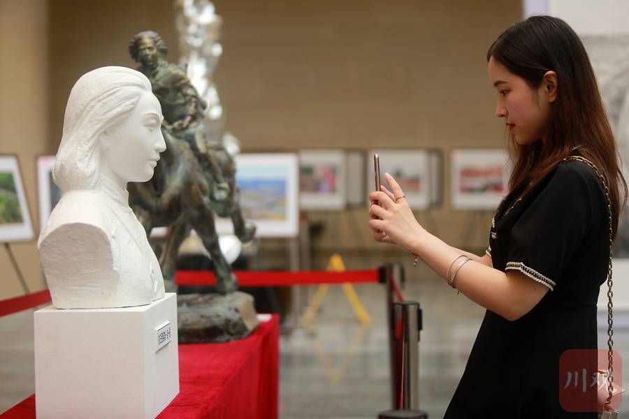 2021年6月29日,在位于四川省宜宾三江新区的市博物馆,市民参观“颂歌献给党”主题文艺创作展。