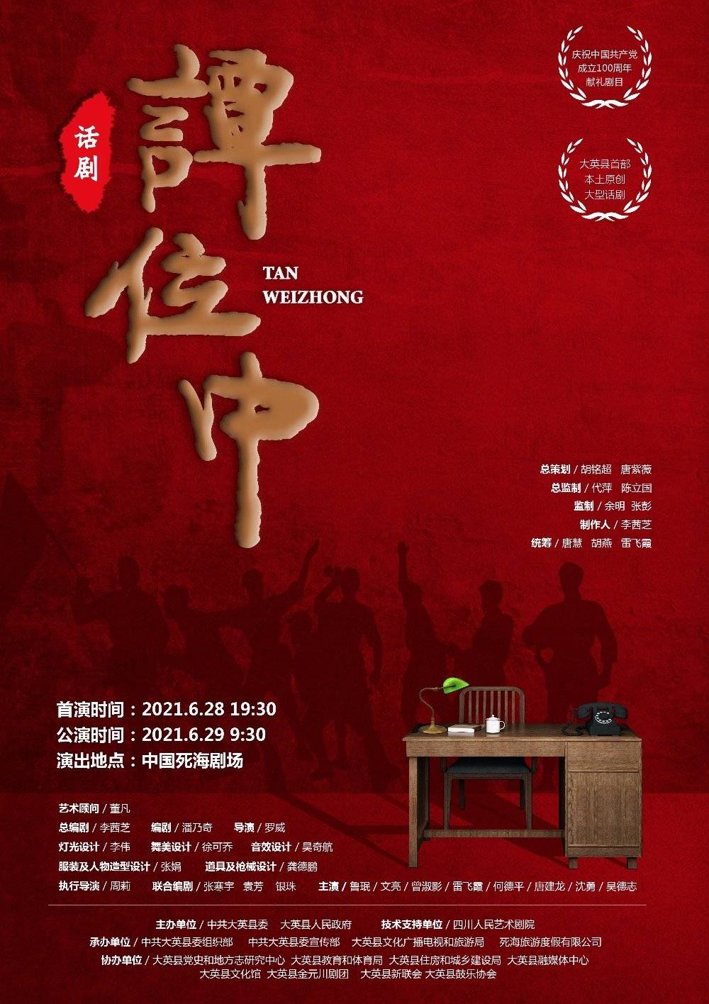 6月29日,遂宁市大英县首部原创大型话剧《谭位中》在大英公演。该剧根据大英县象山地下党员谭位中的真实故事创作。