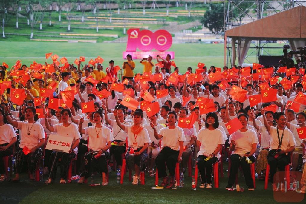 千人激情颂歌唱响“永远跟党走”,千架无人机在夜空中摆出“伟大的中国共产党万岁!”等造型。6月29日晚,“永远跟党走”成都市庆祝中国共产党成立100周年群众歌咏荟演在成都露天音乐公园举行。