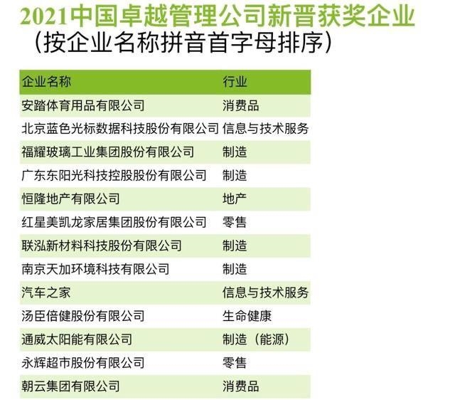 6月30日,第三届“中国卓越管理公司评选项目”榜单出炉,并在成都正式揭晓评选结果。本次榜单共42家企业上榜,其中新希望乳业股份有限公司、海底捞国际控股有限公司和通威太阳能有限公司三家四川民营企业入选。