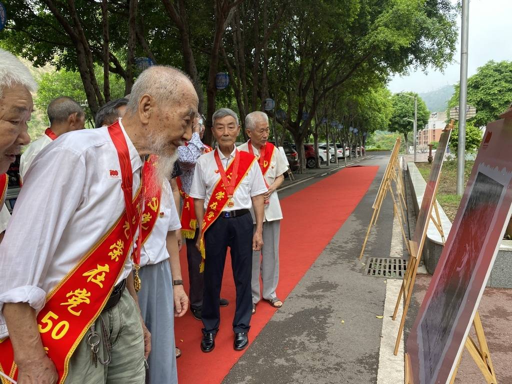 6月29日一早,攀枝花市东区弄弄坪街道向阳社区,一条特殊的红毯早早铺好,等候着即将领取“光荣在党50年”纪念章的老党员们。
