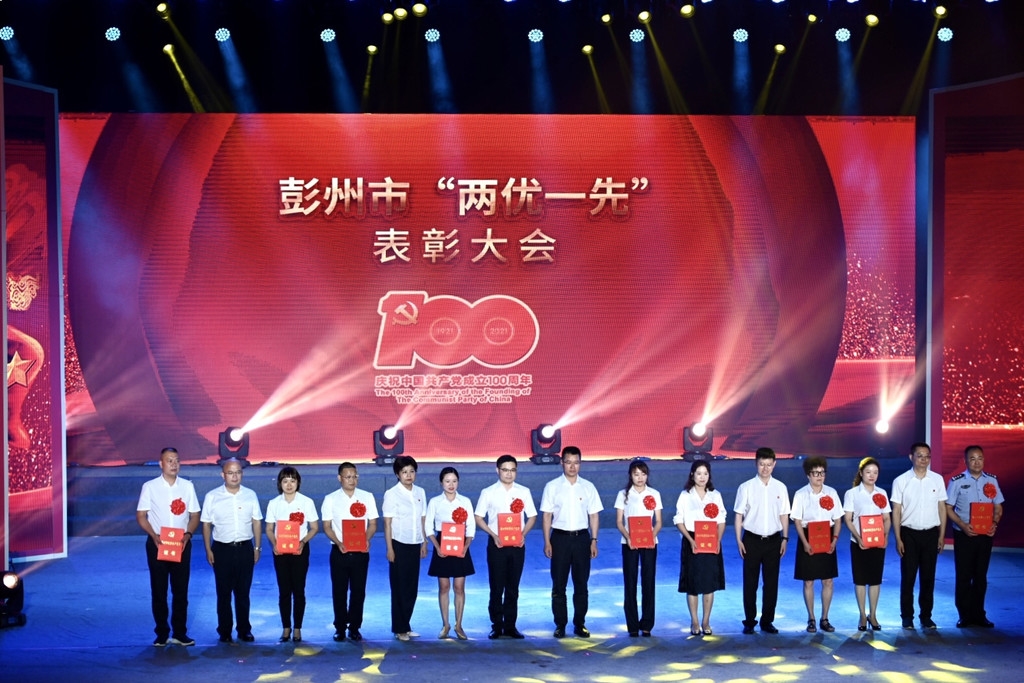 在党的百年华诞来临之际,6月30日,彭州市隆重举行了“奋斗百年路 启航新征程”庆祝中国共产党成立100周年文艺汇演暨“两优一先”表彰大会。会议颂扬了党的百年丰功伟绩,回顾了彭州人民在党的带领下不懈奋斗的光辉历程,表彰了全市优秀共产党员、优秀党务工作者和先进党组织,向党龄50年以上的老党员代表颁发了“光荣在党50年”纪念章,激励全市各级党组织和广大党员干部以更加饱满的热情、更加昂扬的斗志投身建设践行新发展理念的立体山水公园城市,以优异的成绩迎接党的百岁生日。