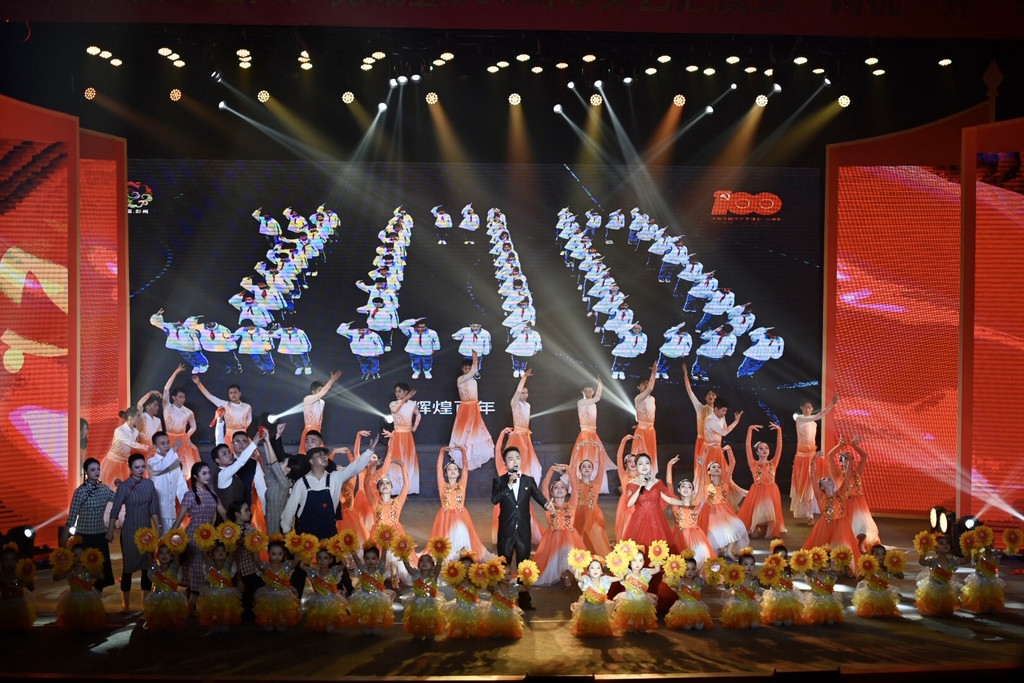 表彰大会后,精彩的文艺汇演拉开帷幕。整场文艺汇演采用歌曲、舞蹈、川剧、情景剧、朗诵等艺术形式,展现“忆往昔,峥嵘岁月稠”“守初心,百年奋斗路”“争朝夕,筑梦新征程”三个精彩篇章,融入百年党史、红色故事、行业特点等,全面展示彭州在党的领导下改革发展的历史巨变,彰显各行各业的行业风采及奋斗向上的精神面貌。