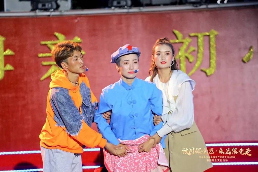 晚上8点,铿锵有力的"入党宣词"回响在“汶川颂党恩·永远跟党走”群众文化活动现场。晚会以建党百年的辉煌历程为脉络,以“过去”“现在”“未来”为时间轴,通过“百年路·传承红色血脉”“新时代·讲述汶川情怀”“新征程·共同筑梦辉煌”三大篇章,以歌舞、快板、小品、朗诵、情景演绎等多种艺术形式,生动展现100年来汶川儿女在中国共产党领导下谱写奋斗赞歌与绘就的历史画卷,热烈抒发汶川人民对中国共产党的感恩之心与庆祝建党百年的喜悦之情。