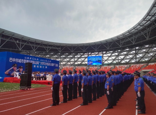 6月30日上午,经过一个月的紧张训练,巴中市城管执法局“大学习、大练兵、大提升”成果检验汇演在巴中市体育中心举行,活动旨在全面提高巴中城管队伍素质,树立城管执法队伍新形象,增强依法执政本领,提升城管执法队伍专业化水平。
