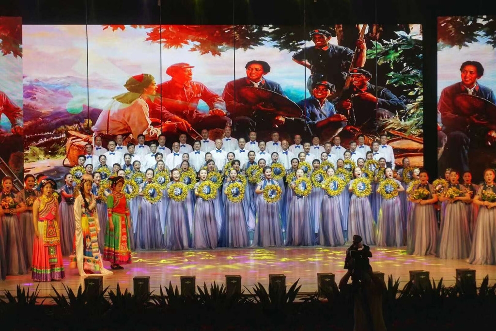 嘹亮的歌声,吟唱难忘的光荣岁月,动人的旋律,演绎新时代的乐章,展演在全场合唱《没有共产党就没有新中国》中落下帷幕。