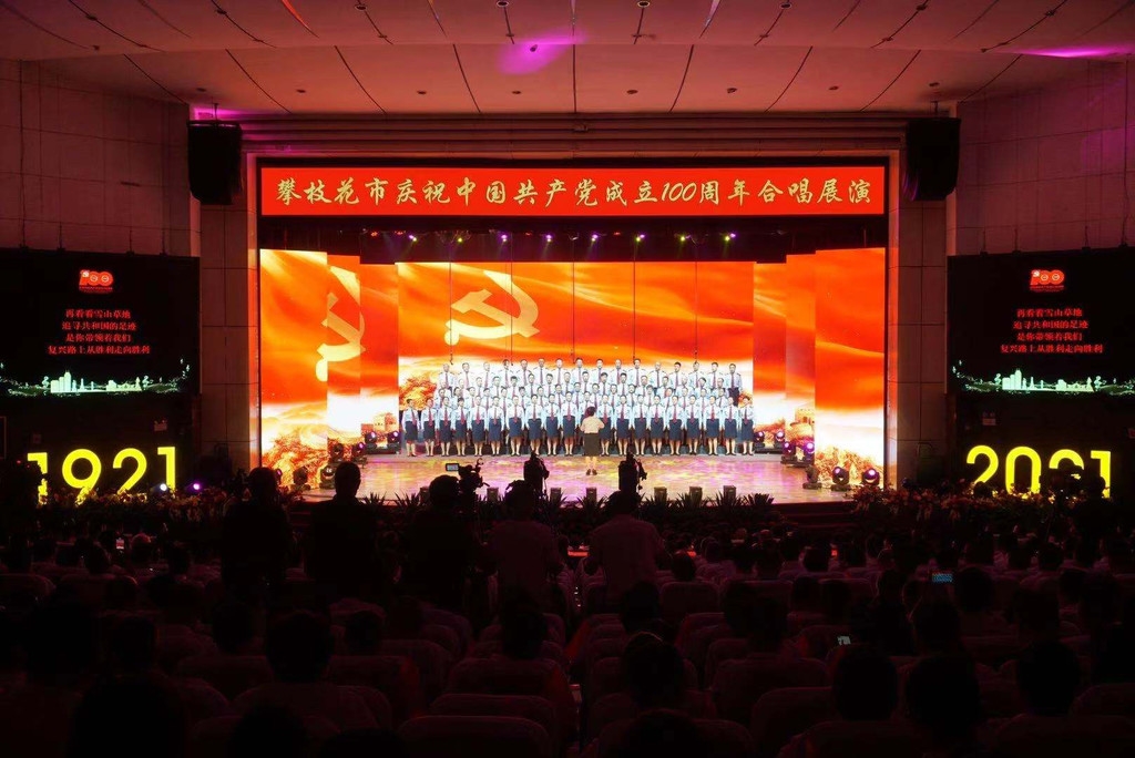 6月30日晚,攀枝花市庆祝中国共产党成立100周年合唱展演在攀枝花学院举行,2000多名观众和合唱队员共同唱响歌曲,献礼建党百年。