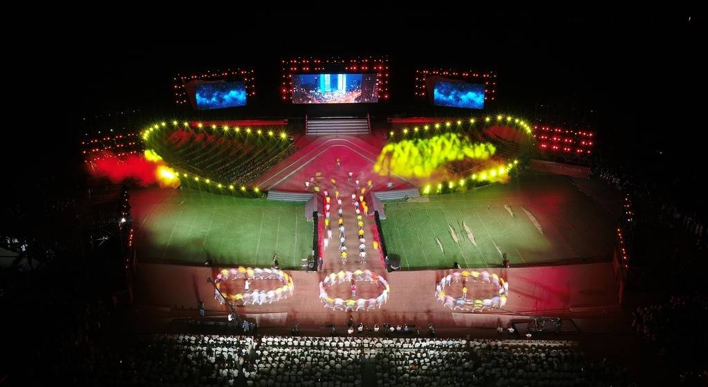 “星火燎原”篇章以情景剧拉开演出序幕,由五四运动到党的一大宣告中国共产党正式成立,通过宏大叙事的方式展现了党的发展历程。“继往开来”篇章以开国大典开篇,叙述了建国初期到改革开放的变化,随后以三线建设导入到德阳的发展建设,再过渡到1996年旌阳建区。“奋进新时代”篇章通过多种形式回顾旌阳建区以来的发展历程,着重展现在脱贫攻坚、乡村振兴、全国县域经济“百强区”培育等方面所取得的突出成绩,展望旌阳未来发展前景。